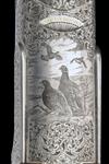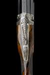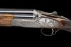30in. nitro barrels, solid tapered matt top-rib scroll-engraved at the breech end, 2 3/4in. chambers, bored approx. 1/4 and 1/2 choke, hold-open toplever, automatic safety with gold-inlaid 'SAFE' detail and integral triggerplate release catch, the action and furniture profusely engraved with bold acanthus scrollwork, the decorative sideplates finely engraved in Bulino style with scenes of pheasant on the left, woodcock on the right and the underside with a covey of partridge, the sides of the action gold-inlaid with the makers name, the underside gold-inlaid with the model designation, the triggerplate signed 'S. BETTINSOLI', bright finish overall, 15in. boldly-figured pistolgrip stock (cast on for the left shoulder) with engraved steel pistolgrip-cap and including 7/8in. rubber recoil pad, weight 7lb. 15oz., in a Franzen nylon slip and with spare mainsprings and strikers
