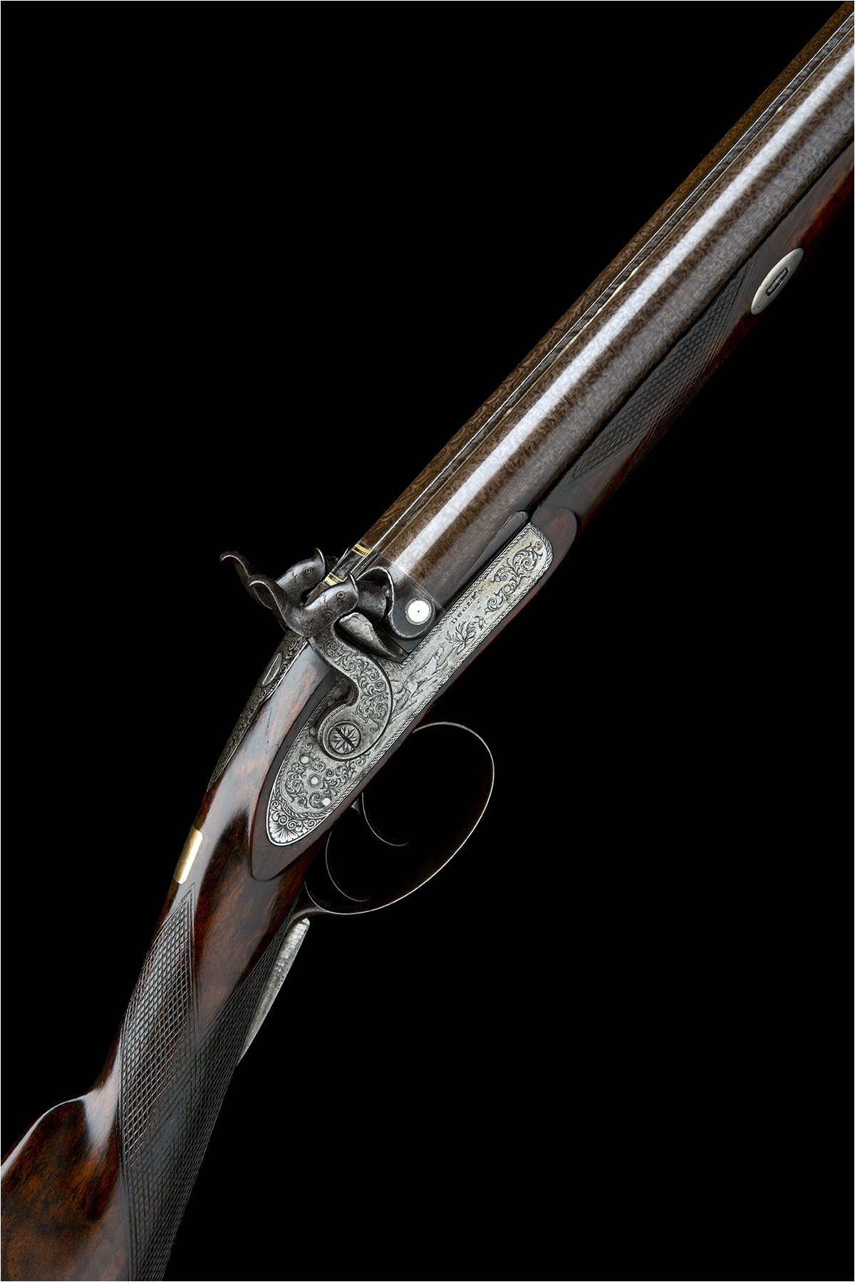 A 16-BORE PERCUSSION DOUBLE-BARRELLED SPORTING-GUN, serial no. 905,