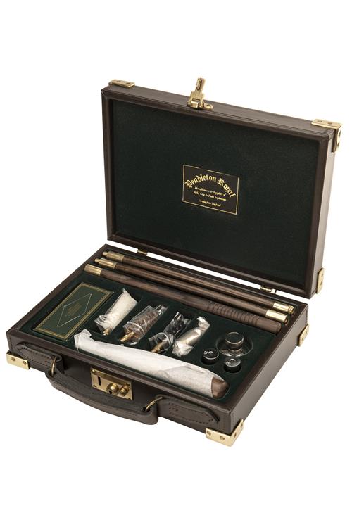 PENDLETON ROYAL A FINE UNUSED BRASS-CORNERED LEATHER CASED PRESENTATION 20-BORE GUN CLEANING KIT,