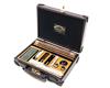 AN UNUSED LEATHER CASED PRESENTATION 12-BORE GUN CLEANING KIT,