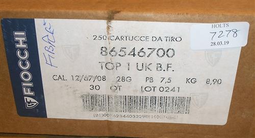 250 FIOCCHI 12 BORE CARTRIDGES, TOP1, 28, 7.5 SHOT 2 1/2in. FIBRE