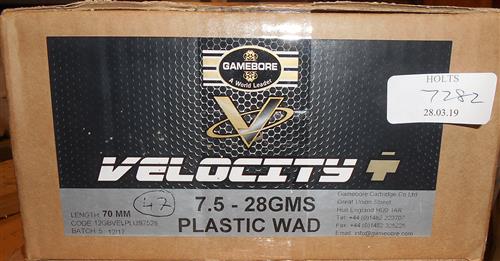 500 GAMEBORE VELOCITY 12 BORE CARTRIDGES, 28, 7.5, 70mm, PLASWAD