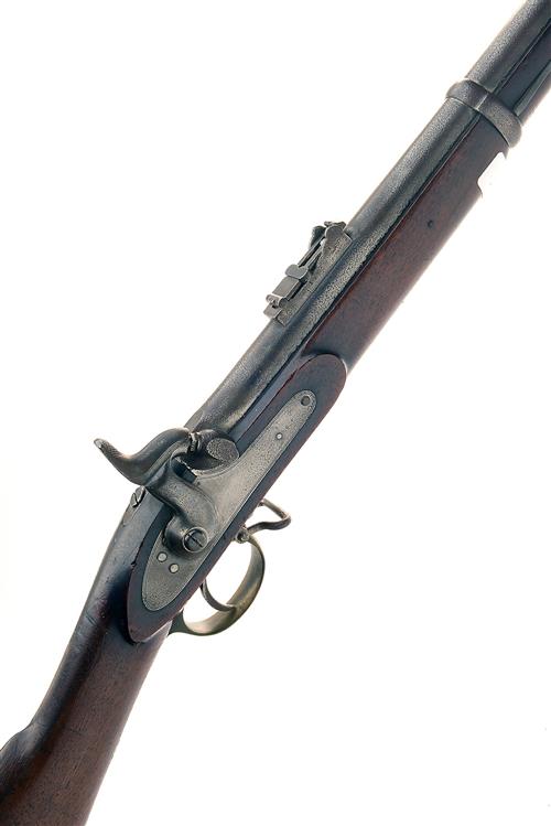A .577 PERCUSSION RIFLED MUSKET, UNSIGNED, MODEL PATTERN 53 THREE-BAND, no visible serial number,