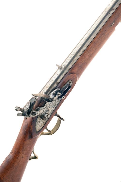 A .780 FLINTLOCK PERCUSSION MUSKET or CARBINE, UNSIGNED, no visible serial number,
