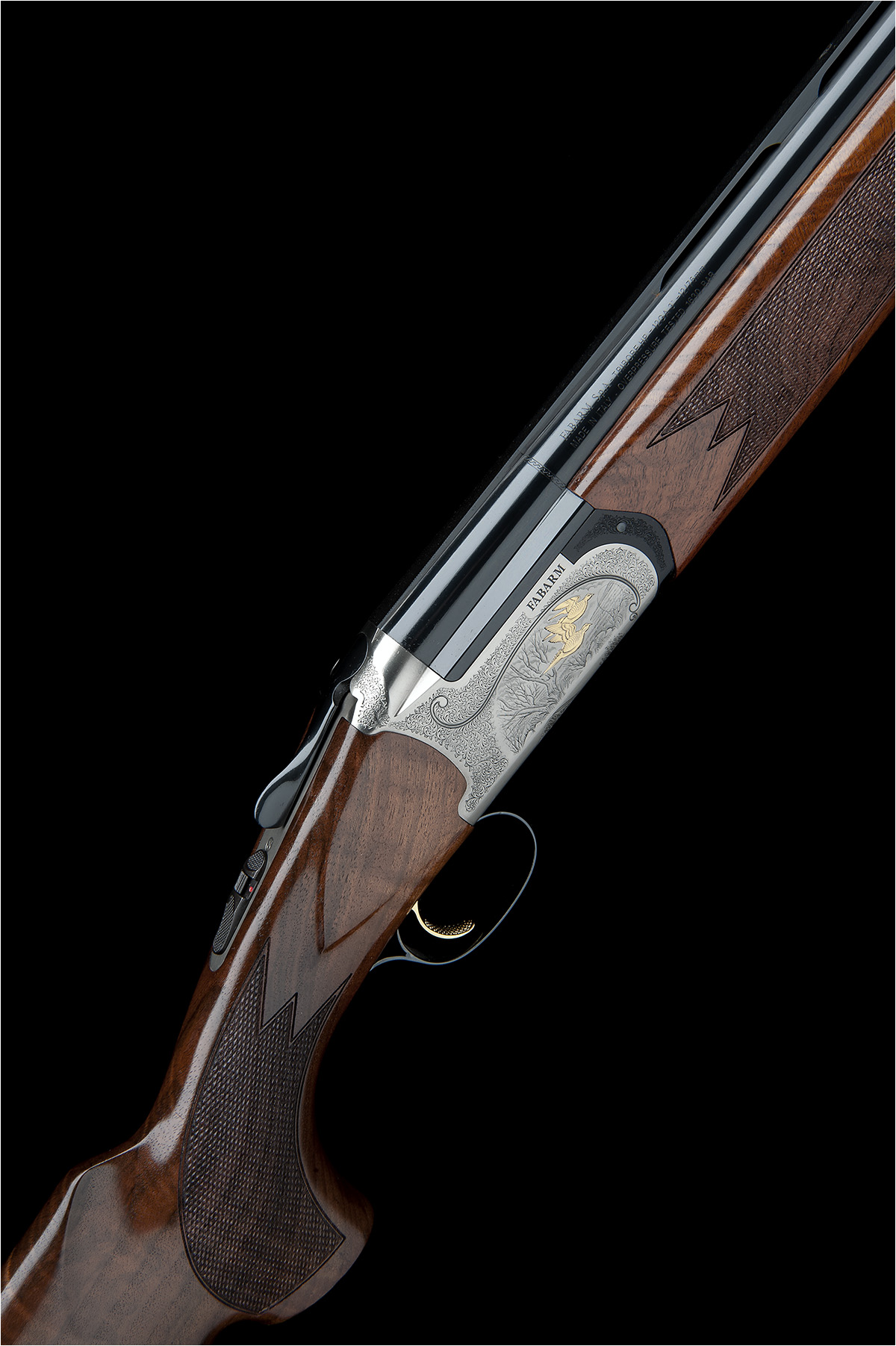 30in. superior proofed nitro barrels with 7mm ventilated matt top-rib, 3in. chambers, multichoke (with spares), hold-open toplever, manual safety with integral barrel-selector switch, gold-washed single trigger, acanthus scroll engraving surrounding scenes of gold-inlaid fowl in their naturalistic habitats, 14 1/4in. pistolgrip stock including 1/2in. rubber recoil pad, weight 7lb. 9oz., in its makers cardboard carton with paperwork