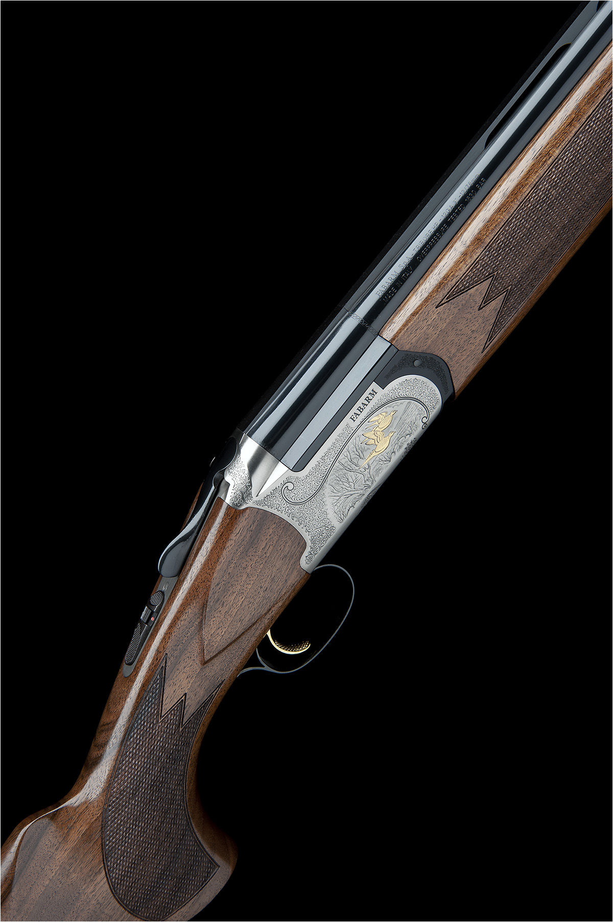 28in. superior proofed nitro barrels with 7mm ventilated matt top-rib, 3in. chambers, multichoke (with spares), hold-open toplever, manual safety with integral barrel-selector switch, gold-washed single trigger, acanthus scroll engraving surrounding scenes of gold-inlaid fowl in their naturalistic habitats, 14 1/4in. pistolgrip stock including 1/2in. rubber recoil pad, weight 7lb. 9oz., in its makers cardboard carton with paperwork