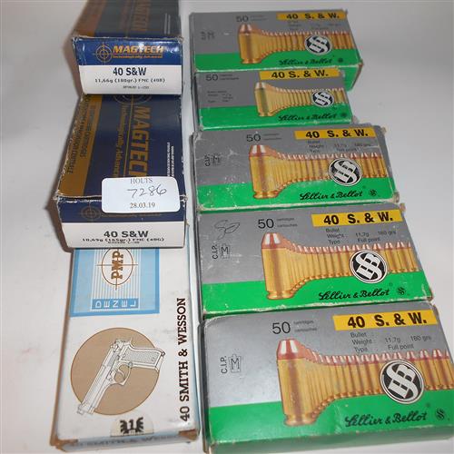 400 ROUNDS .40 S&W AMMUNITION, comprising of 250 Sellier & Bellot 180 grn, 100 Magtech 180grn, 50 rounds PMP 180grn,