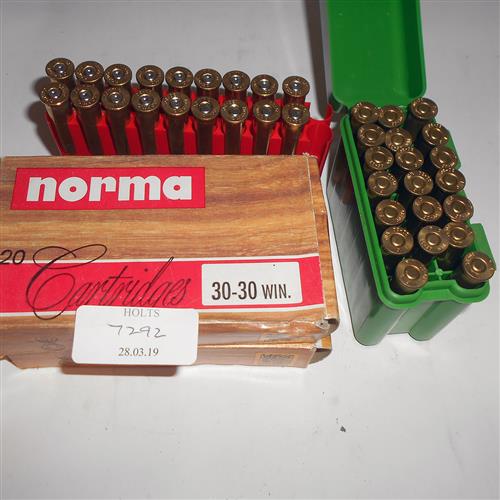 44 ROUNDS .30-30 WIN AMMUNITION, comprising of 24 Norma 150 grn soft nose, 20 Federal soft nose, 14 spare cases.