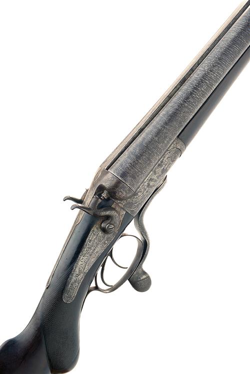 AN 8-BORE DOUBLE-BARRELLED HAMMER-GUN, UNSIGNED, serial no. 21218,
