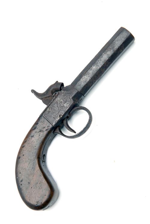 A 40-BORE PERCUSSION BOXLOCK POCKET-PISTOL, UNSIGNED, no visible serial number,