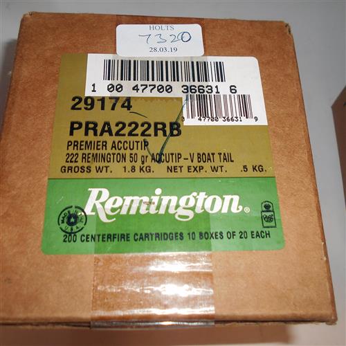 † 200 REMINGTON .222 ACCUTIP AMMUNITION, 50grn PREMIERE