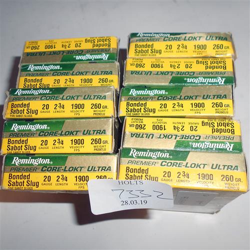 50 20 BORE REMINGTON CORE LOKT ULTRA SLUG AMMUNITION, 2 3/4in. 1900fps 260 GRN BONDED SABOT
