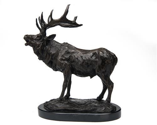 A BRONZE SCULPTURE OF A ROARING STAG,