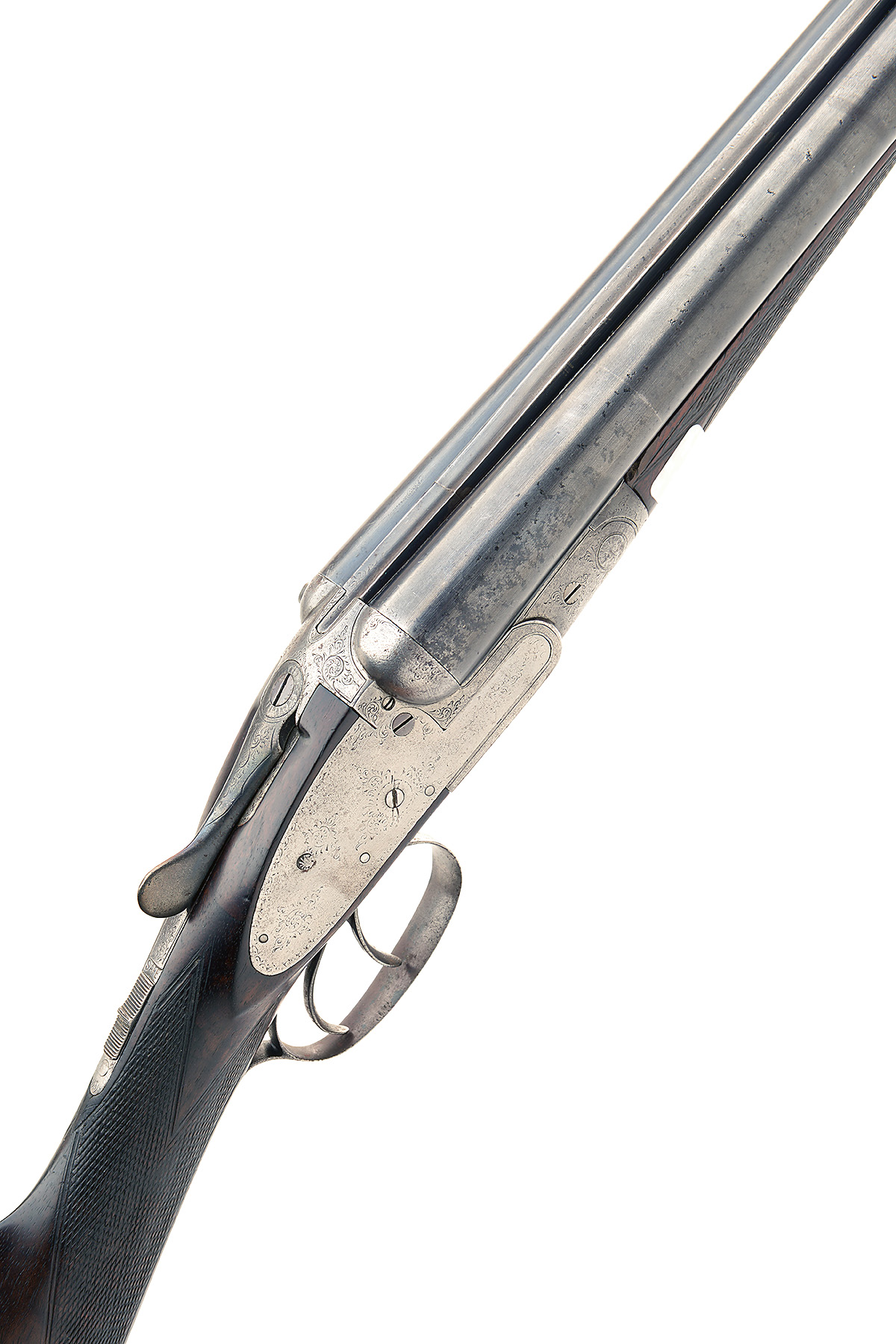 ENGLISH-MADE 12-BORE SIDELOCK NON-EJECTOR, serial no. 33353, 26in. sleeved nitro barrels, rib engraving indistinct, 2 1/2in. chambers, bored approx. true cyl. and 1/4 choke, treble-grip action, automatic safety, border and partial scroll engraving, worn overall, 14 1/4in. stock including buttplate