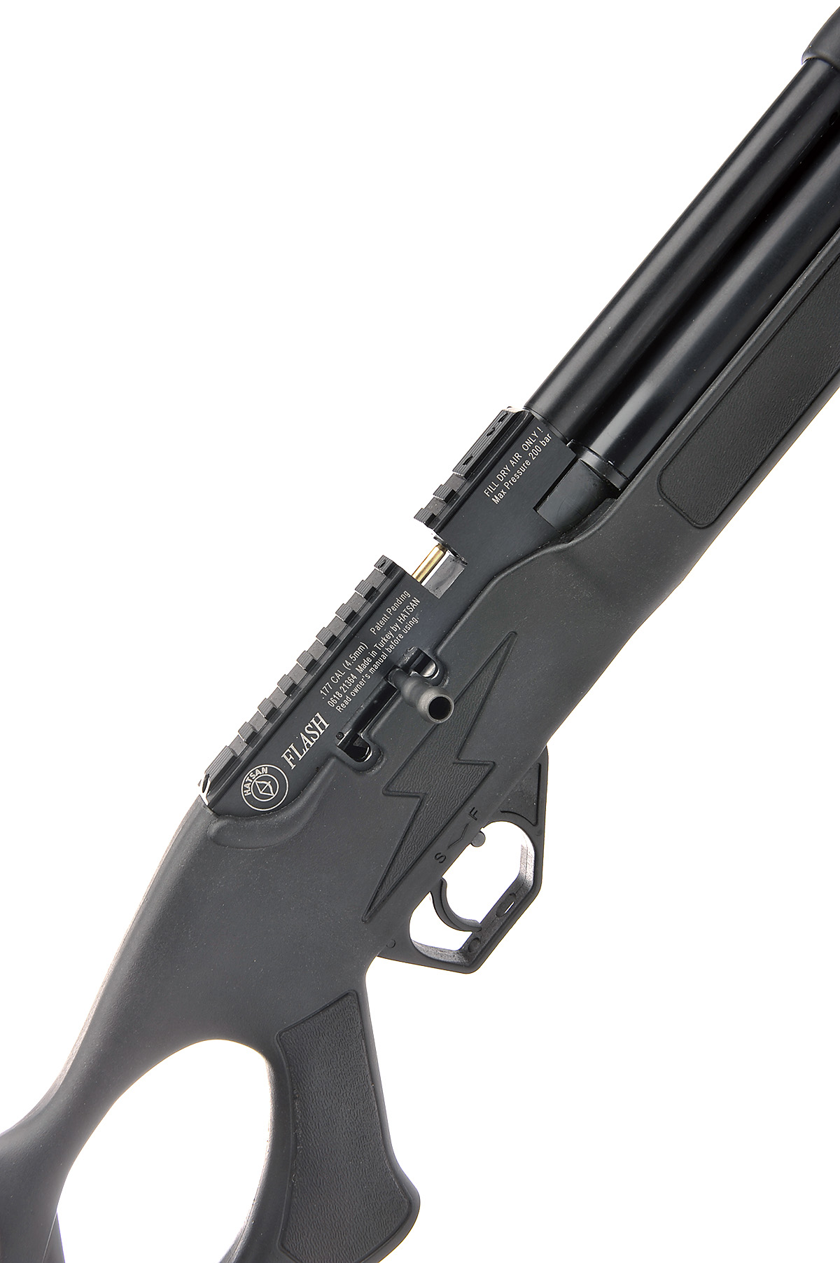 A BOXED .177 PRE-CHARGED PNEUMATIC AIR-RIFLE KIT SIGNED HATSAN, MODEL EDGAR FLASH SYNTHETIC, serial no. 0618 21364,