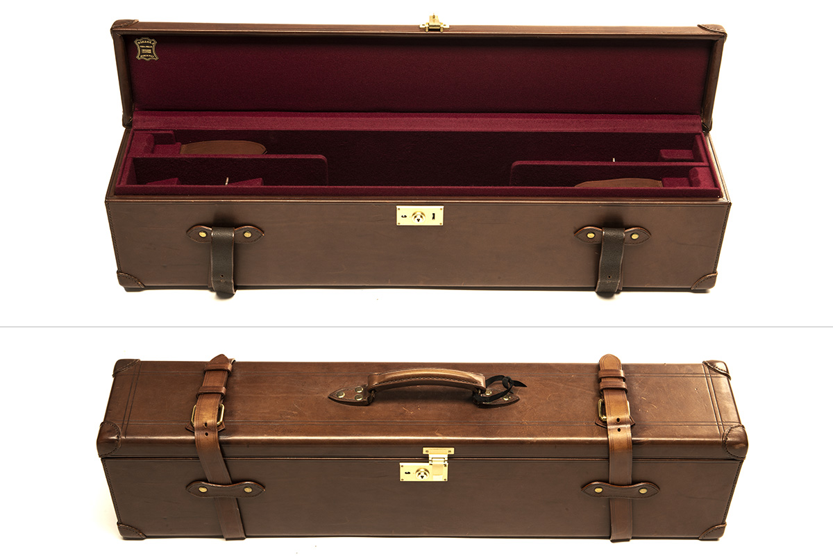 A LEATHER DOUBLE MOTOR GUNCASE,