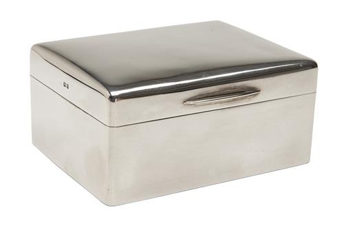 A SILVER WOOD-LINED CIGARETTE-BOX,