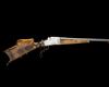 circa 1920, with octagonal blind fluted 31 1/2in. barrel, the top-sides signed in silver gilt 'HANS LECHNER' and 'NURNBERG' respectively, dove-tailed ramp with replacement tunnel fore-sight, dove-tail along the top-flat for an adjustable position rear-sight (absent), plain slab-sided receiver fitted with large banana-shaped tensioning springs to the pins, square form dropping breech marked 'ORIGINAL SYSTEM AYDT', top-tang with base for an aperture sight (absent), chequered walnut tyrolean butt-stock further relief carved with panels of oakleaves, iron Swiss-style heel-plate, complex underlever forming the trigger-guard bow, double-set triggers, smooth walnut fore-end with the tip also relief carved with oakleaves and fitted with iron sling swivels, small loss to wood at heel, action missing striker