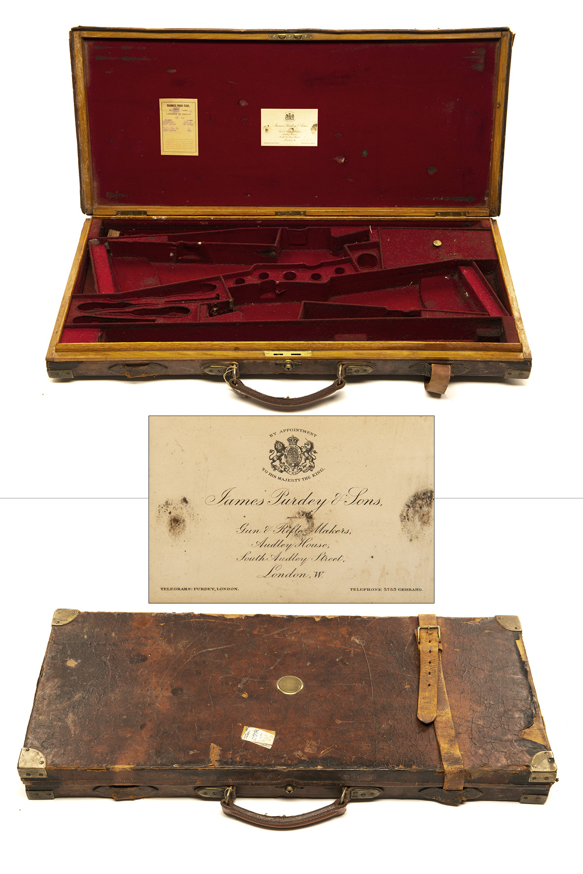 JAMES PURDEY & SONS A BRASS-CORNERED OAK AND LEATHER DOUBLE GUNCASE,