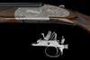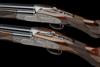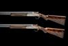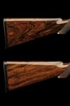28in. nitro chopperlump barrels with 9mm solid raised file cut top-ribs, 2 3/4in. chambers, multichokes (no spares), hold-open toplevers, automatic safeties with integral barrel selector switches, toplevers gold-inlaid '1' and '2', bolstered actions fully engraved with bold acanthus and ribbonwork, the makers name in scrolling banners and the underside with the model designation in roundels, bright finish overall, 14 1/4in. boldly-figured semi-pistolgrip stocks with pistolgrip-caps and including 1/2in. leather covered recoil pads, No.1 fore-end wood with minor cracks to the left side at the knuckle, weight 7lb. 13oz., in a universal motor case