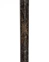 circa 1795-1800, with straight double-edged 27in. spear-point blade, the first half with strong traces of blue and gilt etched decoration (staining and shallow pitting throughout), carved brass 'P' shaped knucklebow with integral single rolled quillion cross-guard, two broad langets relief carved with borders around crowns over fouled anchors, florally carved collar to the carved ivory grip, the grip itself with a lower chequered panel below a shell device below a raised band (small filled repair) and brass lionshead pommel with realistic carved mane backstrap and loose ring for knot, complete with its brass mounted leather scabbard, the throat with engraved panel signed 'WEBB MANUFACTURER, 37 PICCADILLY LONDON', strong traced of gilt finish to brasswork throughout except to replacement drag