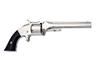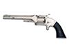 for civil war production, with nickel-plated 6in. octagonal tip-up barrel signed on the raised sighting rib 'SMITH & WESSON SPRINGFIELD MASS.', plated frame and cylinder, the cylinder with traces of a central band of patent dates, three pin cylinder lock, spurred hammer and spur trigger and smooth ebony grips, the whole re-plated in antiquity