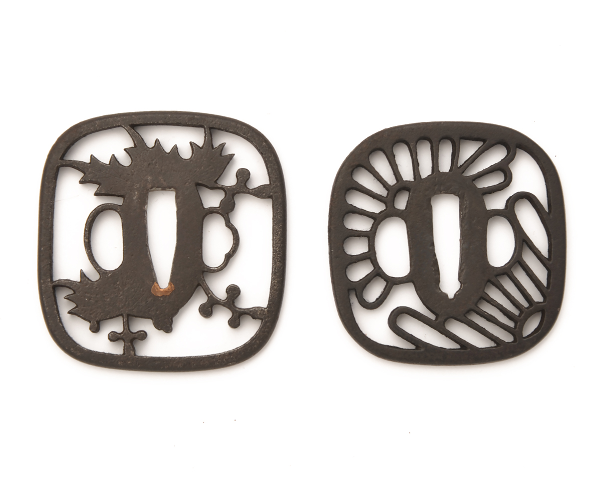TWO EARLY STYLE PIERCED IRON TSUBAS, one of four-lobed shape, the other with roughly circular outline, possibly 17th-18th century (2)