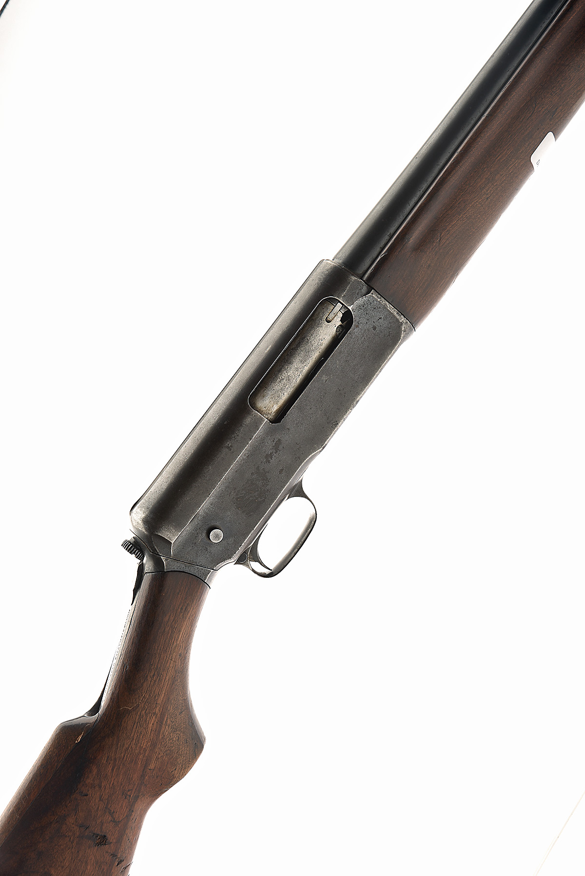 WINCHESTER 12-BORE 'MODEL 1911' SEMI-AUTO SHOTGUN, serial no. A20141, for 1912, 26in. nitro reproved ribless barrel (in 2023), the fore-part with knurled cocking grip, blade fore-sight, 2 3/4in. chamber, bored approx. 1/2 choke, receiver with matted sighting flat, the rear with take-down knob, manual push-button safety, plain action, 14in. three-piece pistolgrip stock including 1/2in. rubber recoil pad, sling eyes, some splitting to fore-end, weight 8lb. 4oz.
