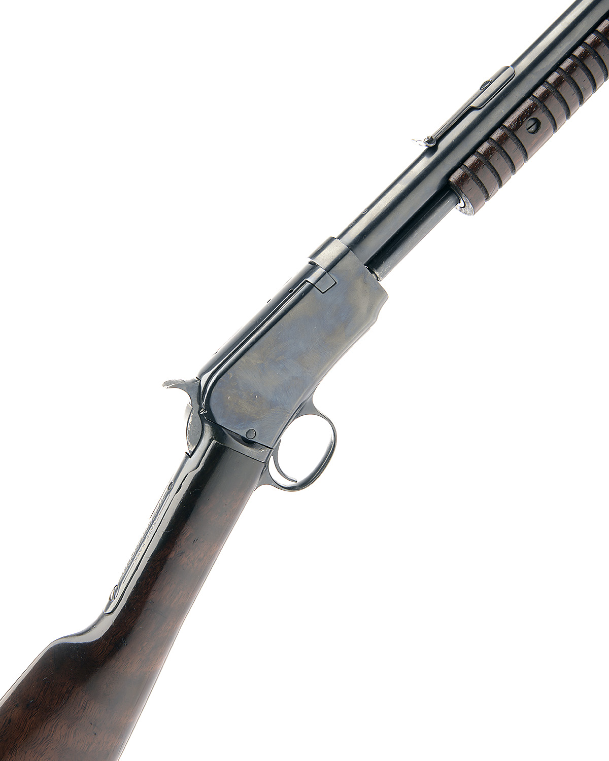 WINCHESTER .22 L.R. 'MODEL 06' PUMP-ACTION REPEATING TAKE-DOWN SPORTING RIFLE, serial no. 639981A / 594517, - CASED 19 1/2In. nitro reproved barrel, ramp-mounted blade fore-sight, leaf rear-sight, no safety, 12 3/4in. well-figured straight stock,