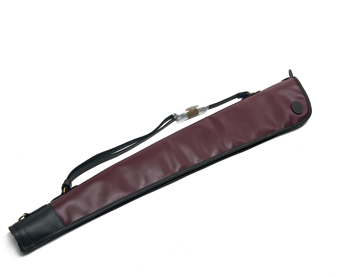 AN UNUSED BURGUNDY LEATHER SHEEPSKIN-LINED SINGLE GUNSLIP,