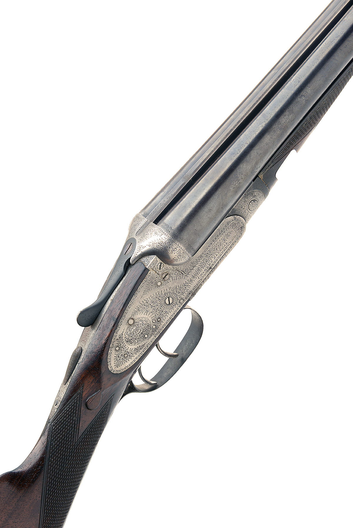 CHARLES BOSWELL 12-BORE SIDELOCK NON-EJECTOR, serial no. 16252, serial number on barrel loop only, 28in. replacement nitro reproved barrels, the rib engraved 'W. JEFFERY & SON. RUSSELL ST. PLYMOUTH.', 2 1/2in. chambers, bored approx. true cyl. and full choke, treble-grip action, automatic safety with gold-inlaid 'SAFE' detail, gold-inlaid cocking indicators, bouquet and scroll engraving, 13 3/4in. stock including buttplate, weight 6lb. 10oz.