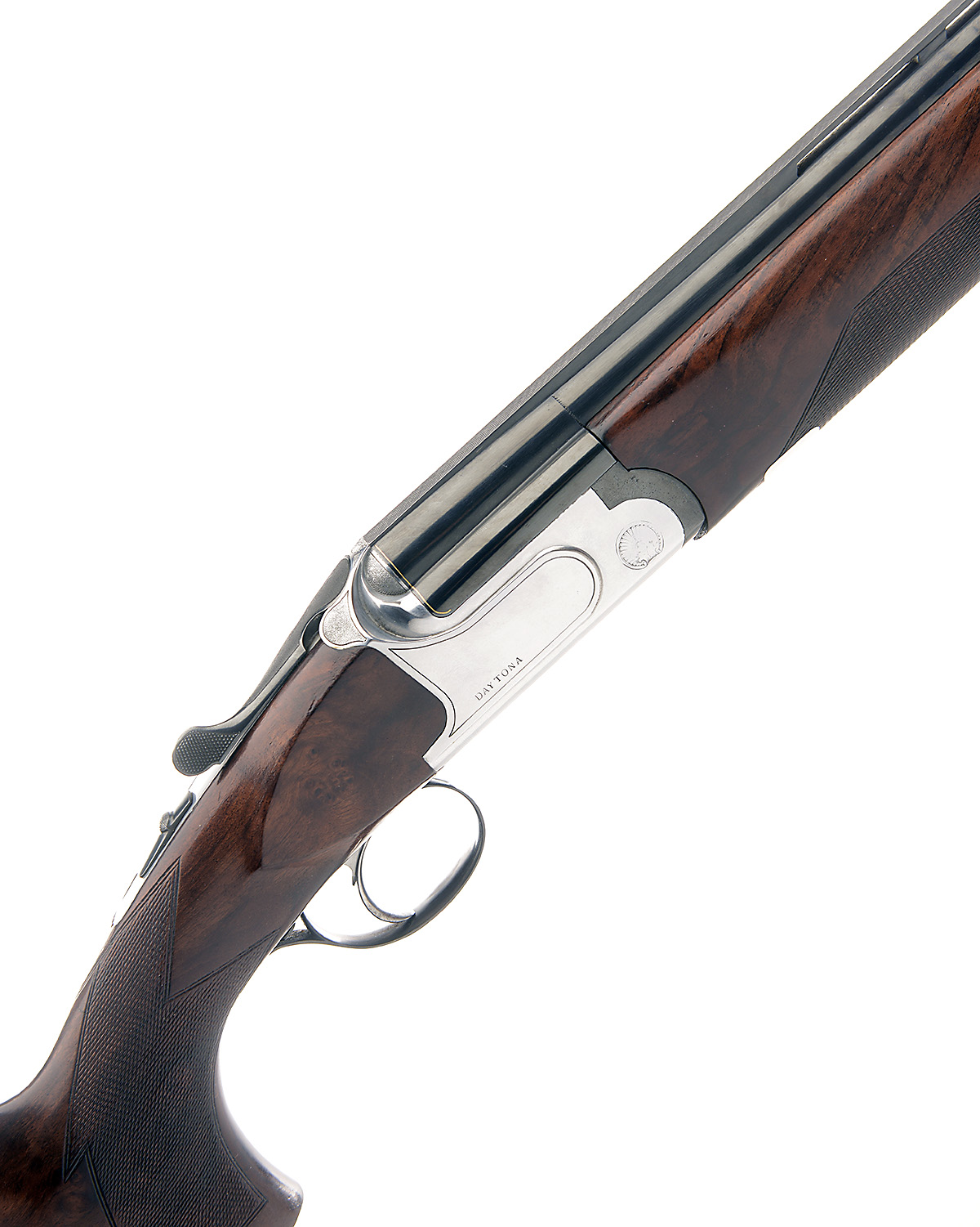 RENATO GAMBA 12-BORE 'DAYTONA' SINGLE-TRIGGER DETACHABLE TRIGGERPLATE-ACTION OVER AND UNDER EJECTOR, serial no. 25259, with extra barrels, sn. R1276, 30in. ported nitro barrels with 9mm ventilated matt top-rib, ventilated mid-rib, 2 3/4in. chambers, bored approx. 1/4 and 1/2 choke; additional 30in. nitro barrels with 10mm ventilated matt rib, ventilated mid-rib, 2 3/4in. chambers, bored approx. 1/2 and 3/4 choke, hold-open toplever, manual safety, detachable triggerplate, border engraving, silver finish, 14 1/2in. figured pistolgrip stock including 1 3/4in. recoil pad, weight 8lb. 6oz. (both sets), in its universal case with original buttplate and provision for both sets of barrels