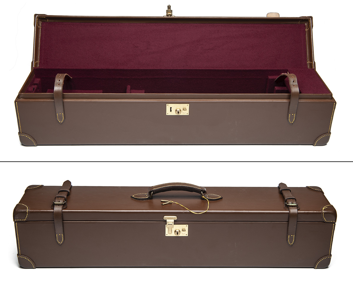 fitted for 28in. barrels. (could adapt to 31in.), the interior lined with maroon baize, brass lock (including key)