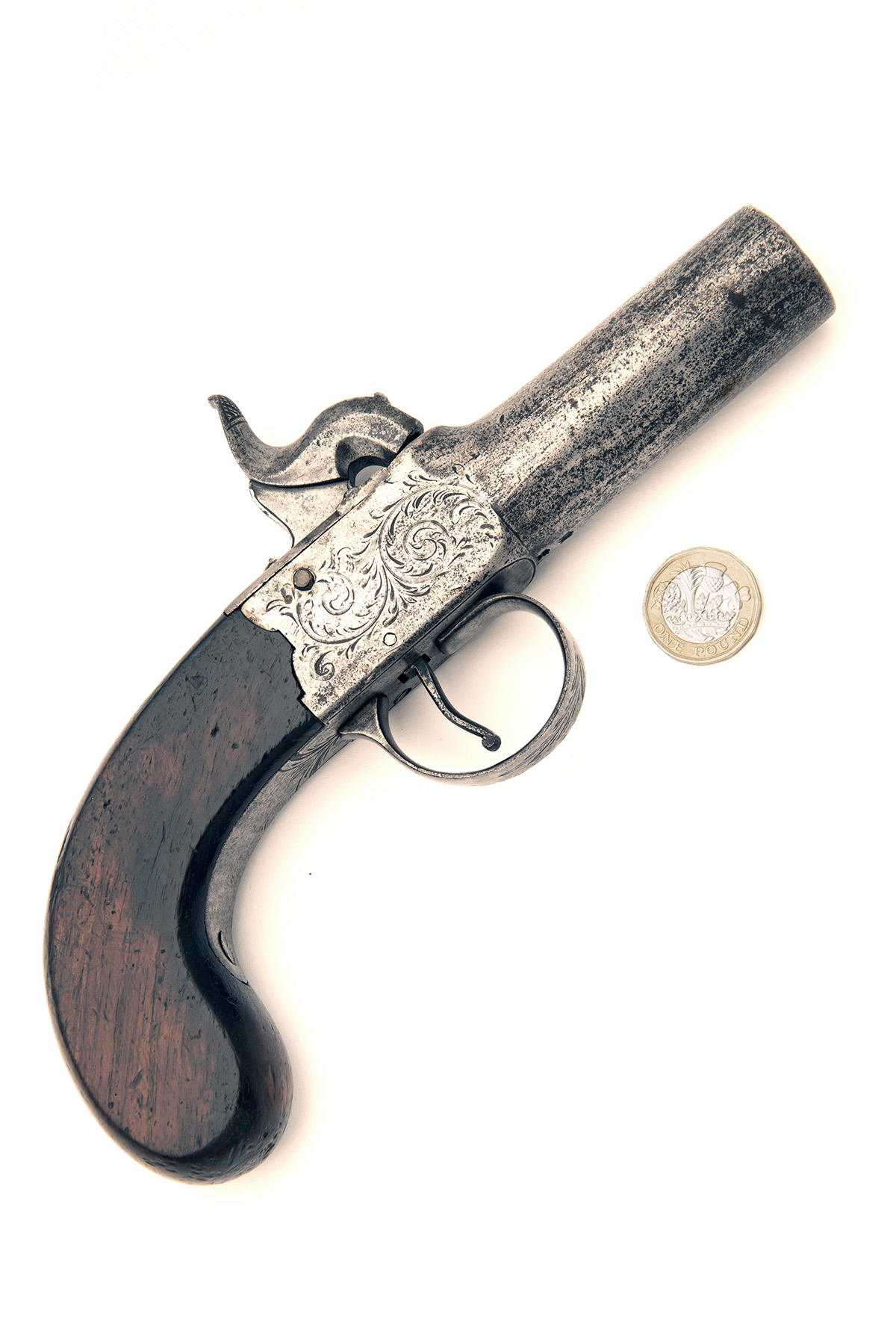 A RARE OVERSIZED 10-BORE PERCUSSION POCKET-PISTOL, no visible serial number,