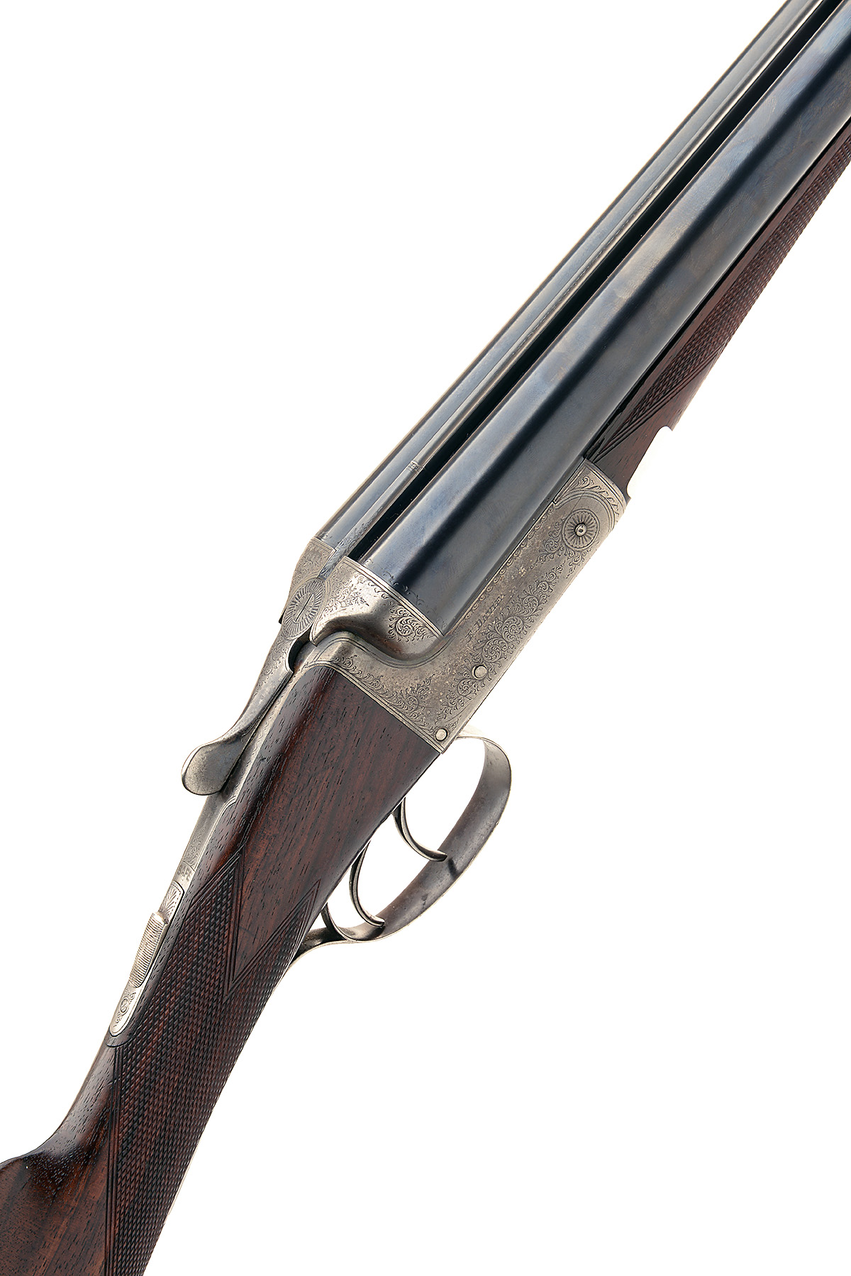 F. DAVIE 12-BORE BOXLOCK EJECTOR, serial no. 93536, 28in. nitro reproved barrels, the rib engraved 'FRANCIS DAVIE. HIGH ST. ELGIN.', 2 1/2in. chambers, bored approx. true cyl. and full choke, treble-grip action, automatic safety with inlaid 'SAFE' detail, border and partial acanthus scroll engraving, retaining traces of original colour-hardening and finish, 14 1/2in. stock, weight 6lb. 4oz.