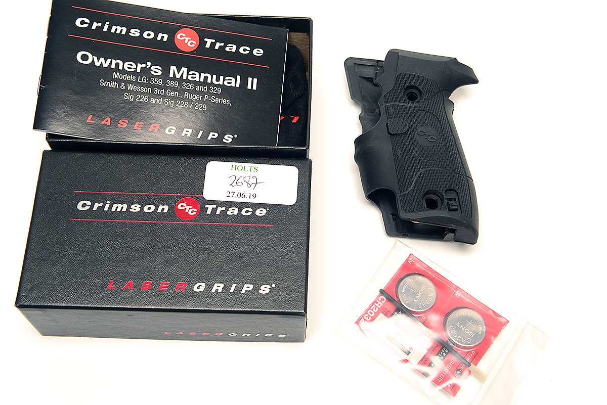 A CRIMSON CTC TRACE LASER GRIPS, in its makers carton
