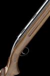 for 1959, with blued 18in. barrel, ramp fore-sight retaining tunnel protector, folding leaf rear-sight, automatic loading tap at breech, plain 9 1/2in. air-chamber with four separate rail slots, the top of cylinder etched 'BSA CLUB' the 'BSA' part with an arrow trademark (bright and clear), black stove enamelled trigger unit, plain walnut half-stock with ribbed heel and broad finger-grooves to fore-end, concealed under-lever, some light moth-nipping to enamel otherwise appearing very little used