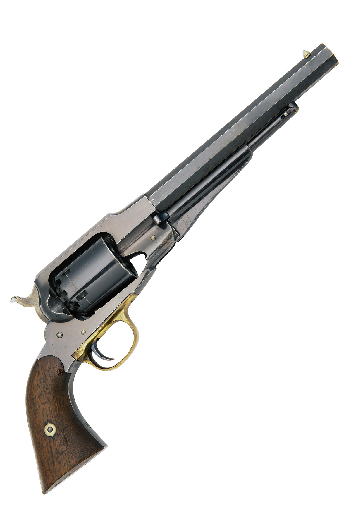 circa 1874, with 8in octagonal blued sighted barrel marked with the patent date and signed 'E REMINGTON AND SONS. ILION NEW YORK USA' over 'NEW-MODEL', blued cylinder and frame, colour-hardened hammer, brass trigger-guard, smooth walnut grips, the whole remaining in a fine state of preservation with the majority of its original blued finish
