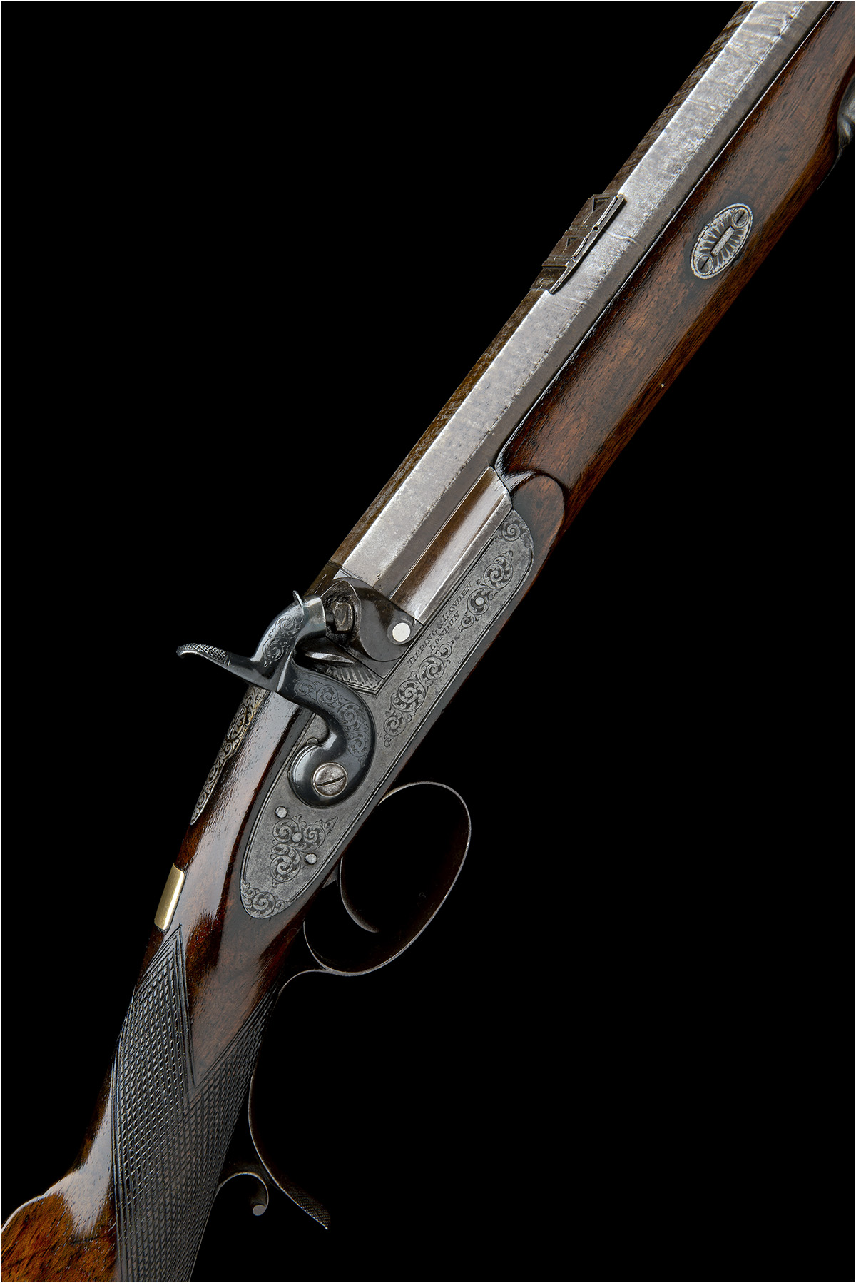 A 20-BORE PERCUSSION SINGLE-BARRELLED SPORTING-RIFLE, no visible serial number,