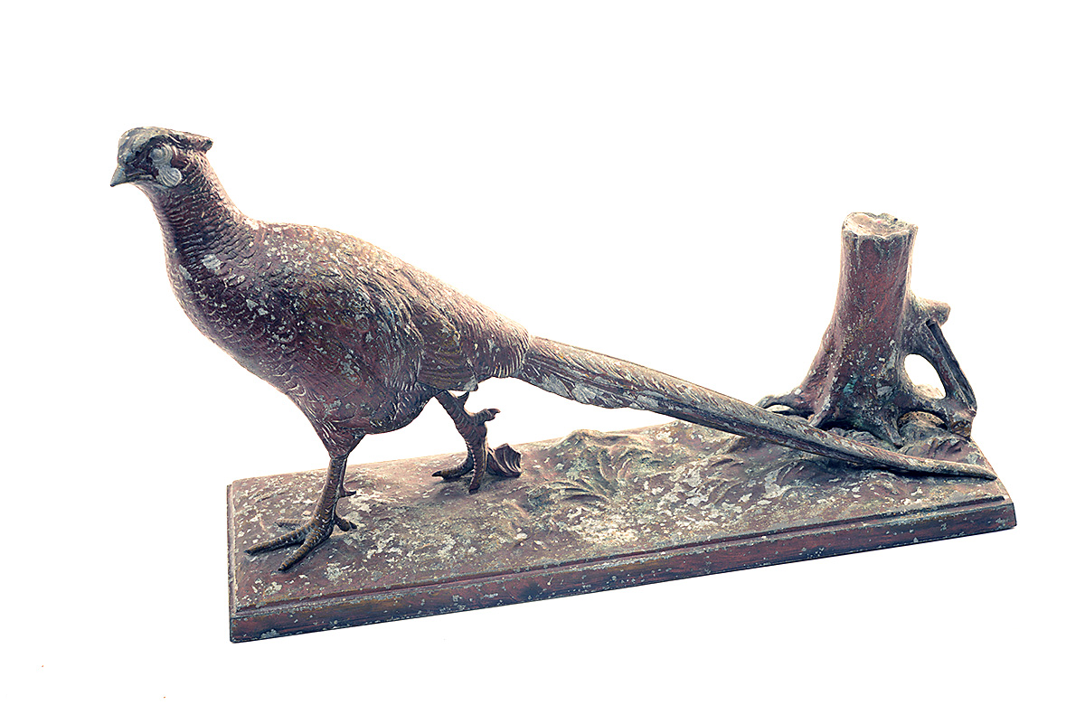 A BRONZE FULL-MOUNT OF A COCK PHEASANT, measuring approx. 13in. x 8in. x 4in.