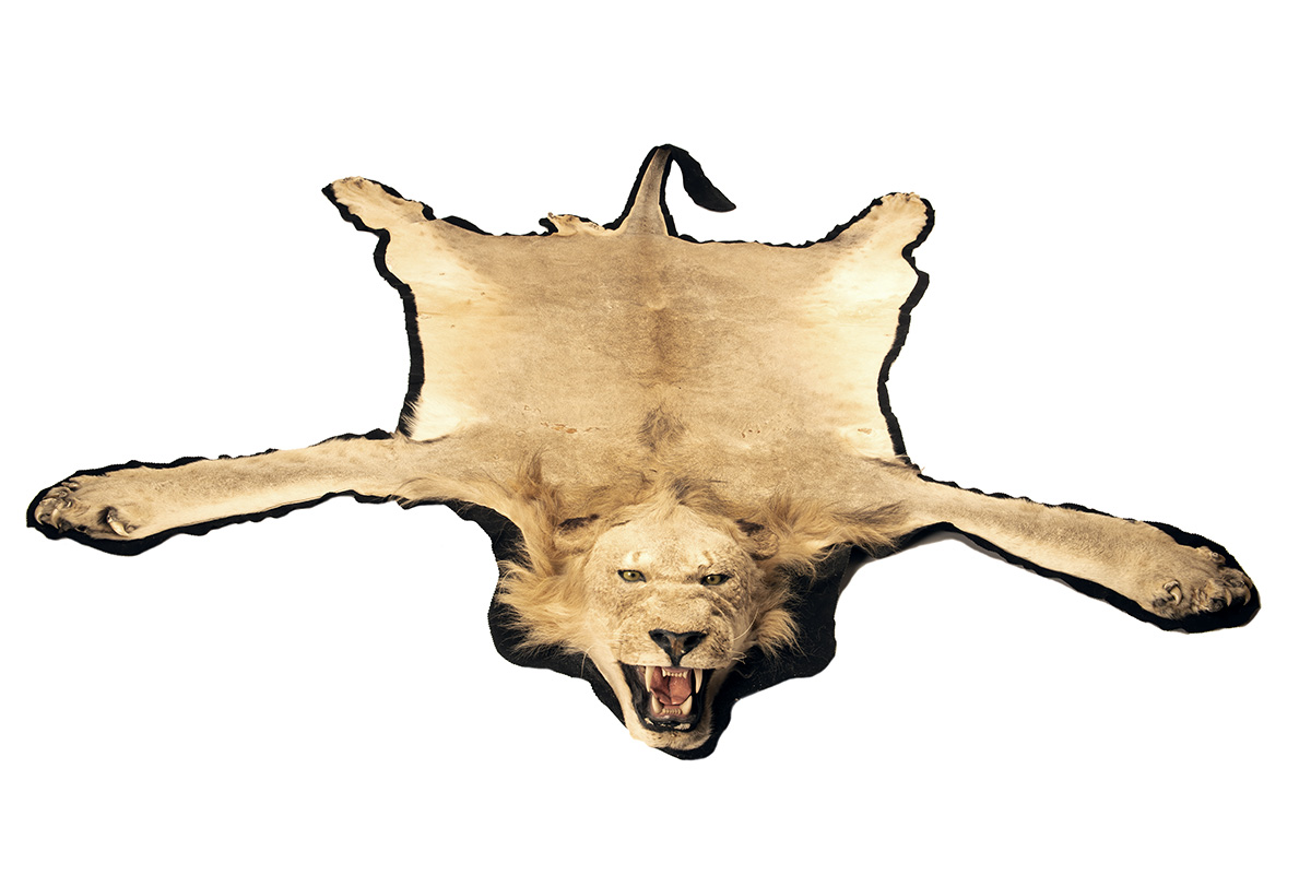 A HEAD AND RUG MOUNT OF A LION (panthera leo),