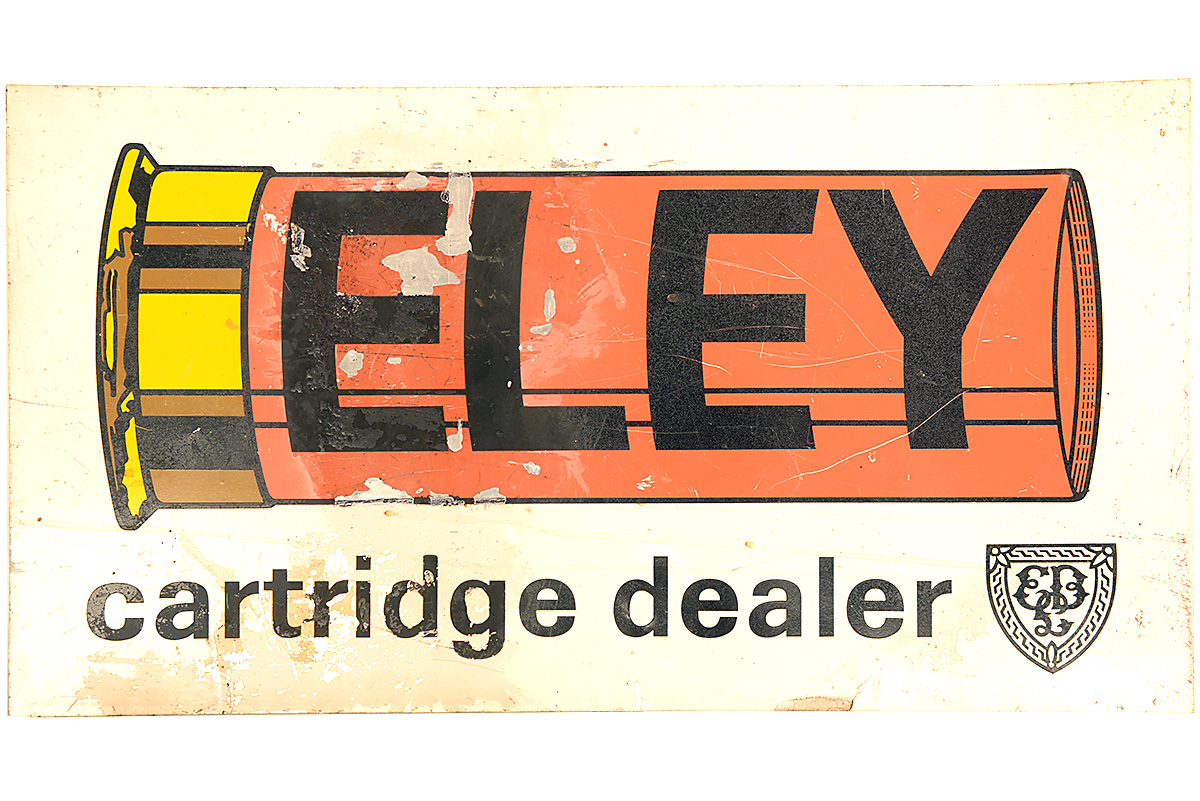 A VINTAGE 'ELEY CARTRIDGE DEALER' ADVERTISING SIGN, measuring approx. 22in. x 12in.