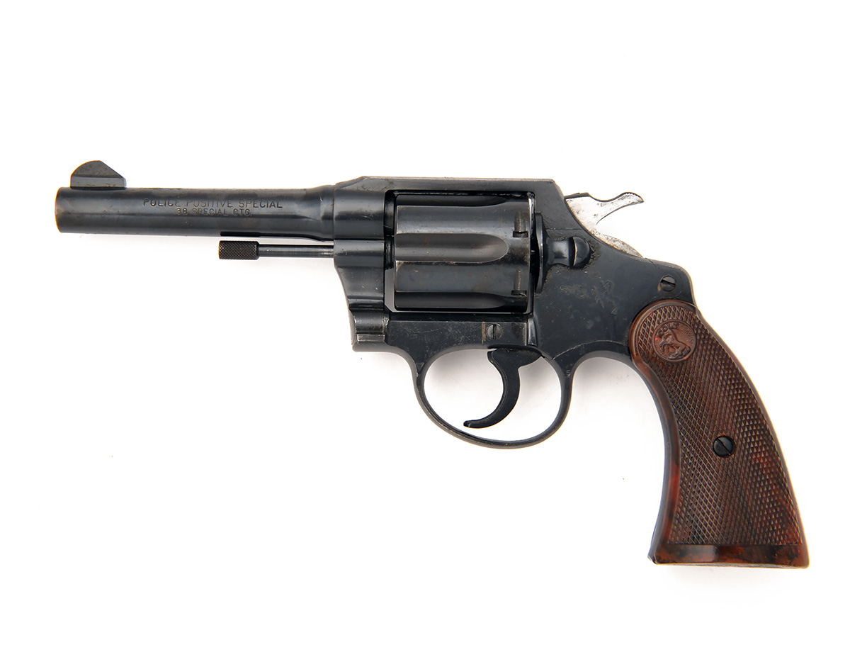 COLT .38 SPL. 'POLICE POSITIVE SPECIAL' SIX-SHOT DOUBLE-ACTION REVOLVER, serial no. 531212, 4in. blued sighted barrel, blued frame, swing-out fluted cylinder, chequered wood-effect bakelite grips, the whole retaining much finish