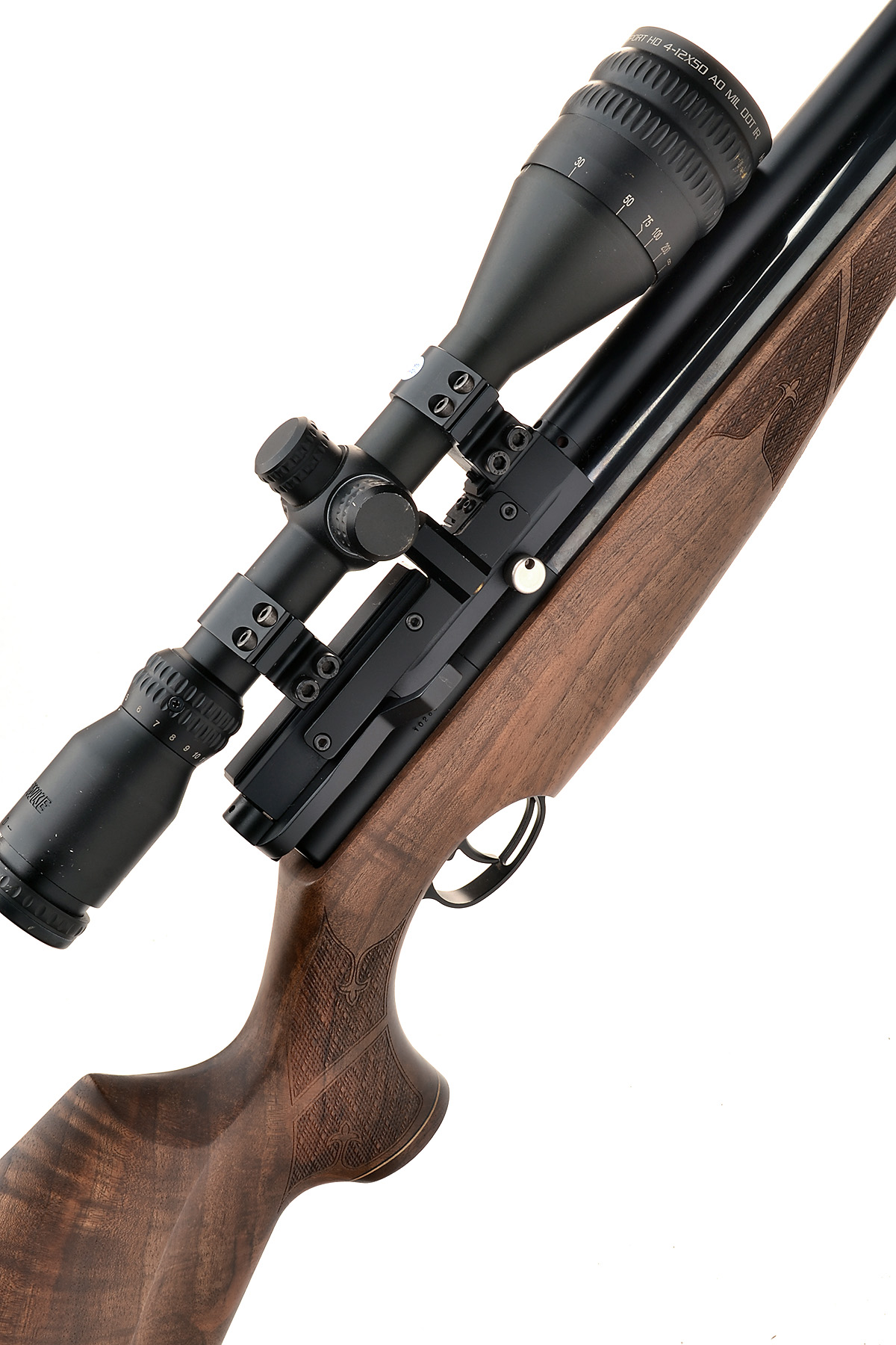 AN FAC-RATED .22 PRE-CHARGED PNEUMATIC AIR-RIFLE SIGNED AIR-ARMS, MODEL 'S510 XTRA FAC', serial no. 102604, with 26in, barrel with moderated shroud, alloy side-lever receiver with detachable magazine (included), blued air reservoir and figured walnut left hand stock, appearing little used and fitted with a Hawke 4-12x50 electronic telescopic sight