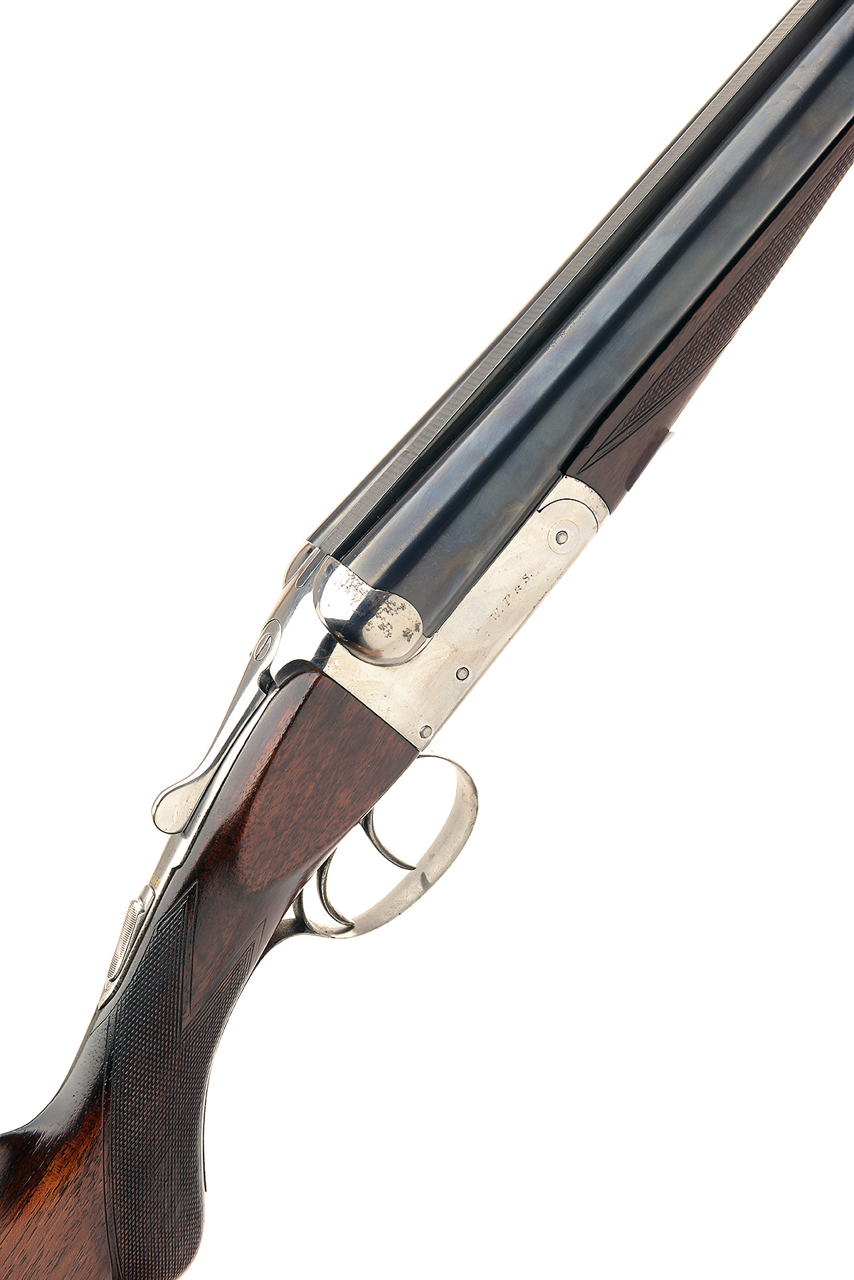W.P. & S. 12-BORE BOXLOCK NON-EJECTOR WILDFOWLING GUN, serial no. 14676, circa 1938, 30in. nitro barrels (slightly loose on action) with raised matt rib, the right tube engraved 'W.P. & S.', 2 3/4in. chambers, bored approx. 3/4 choke in both, under rib drilled, treble-grip action with side-clips, automatic safety with gold-inlaid 'SAFE' detail, plain highly polished finish, the action signed 'W.P. & S.', 14 1/8in. semi-pistolgrip stock including steel buttplate, weight 7lb. 15oz., with a nylon slip