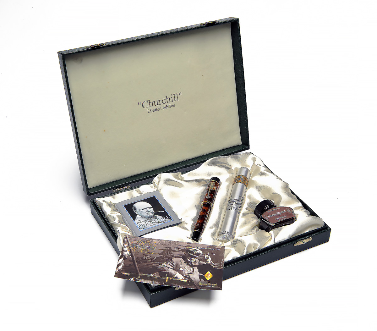 A BOXED & CASED LIMITED EDITION FOUNTAIN PEN, MODEL 'CHURCHILL', serial no. 368/121,