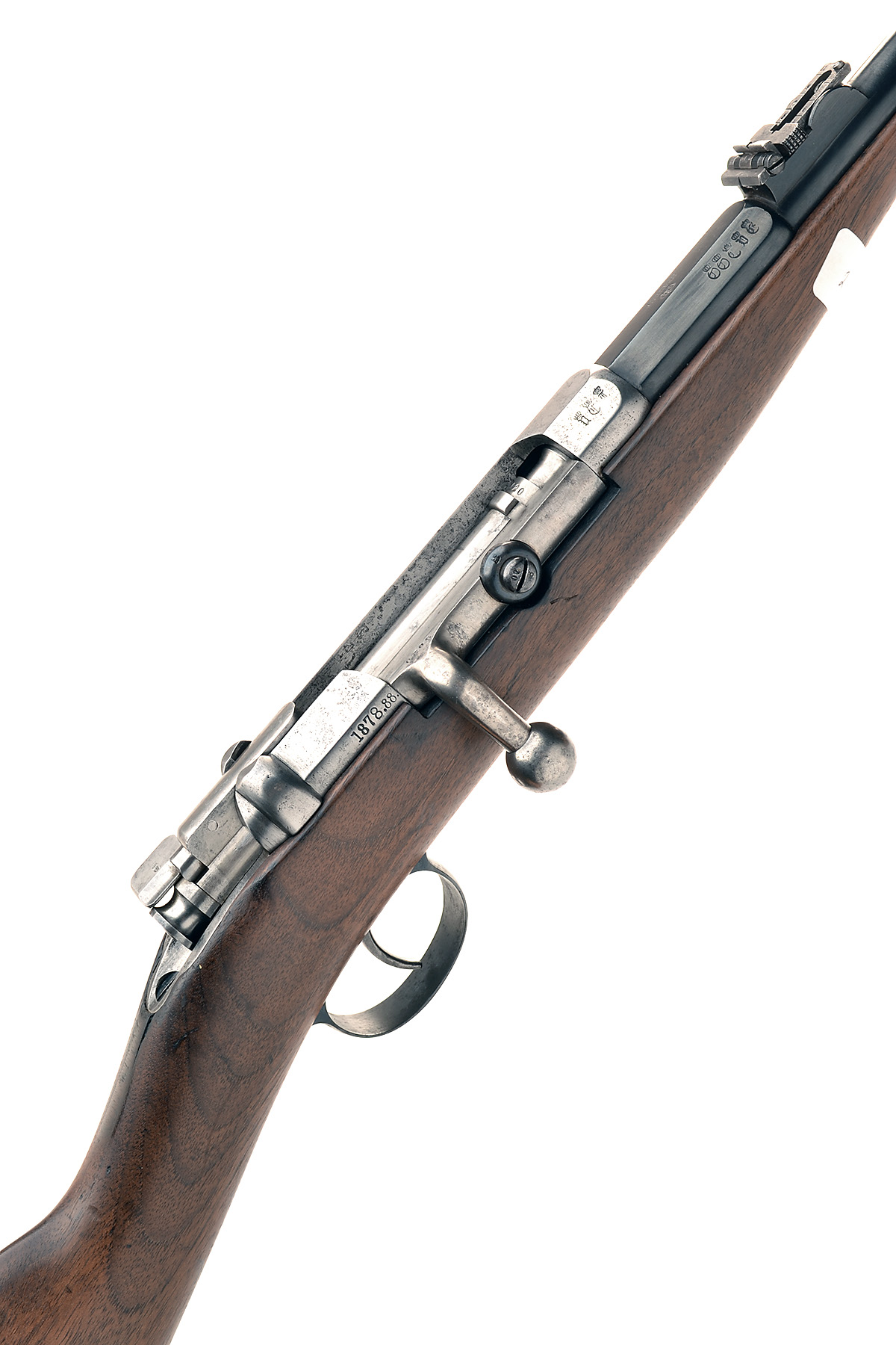 AN 11mm (MAUSER) BOLT-ACTION SPORTING-CARBINE, UNSIGNED, MODEL 'M71', serial no. 5020, cut down from a service-rifle, with re-blued 20in. barrel, brushed bright octagonal receiver, turned down bolt handle and walnut half-stock with iron furniture