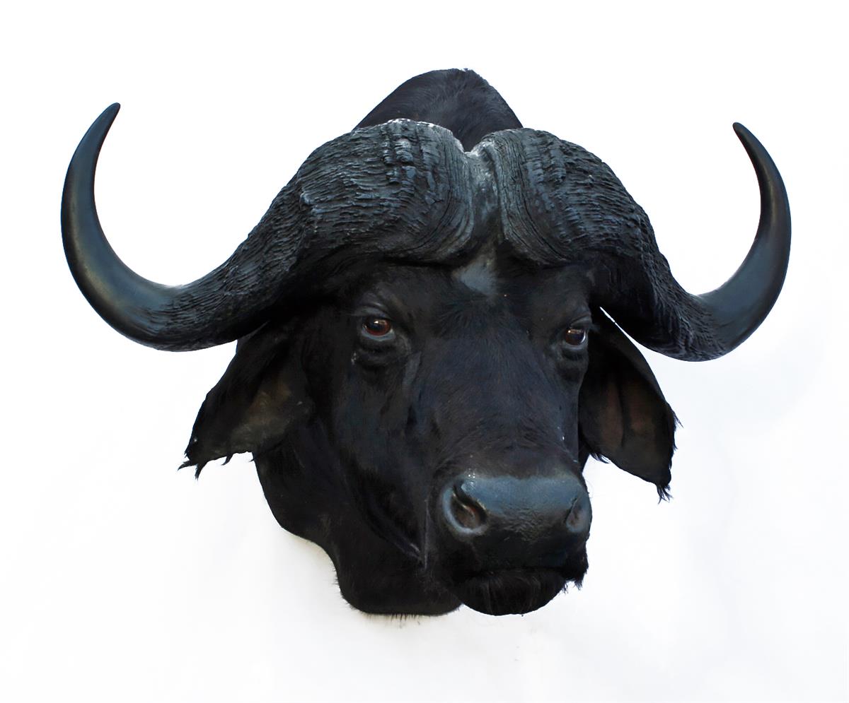 A HEAD AND CAPE MOUNT OF A CAPE BUFFALO,