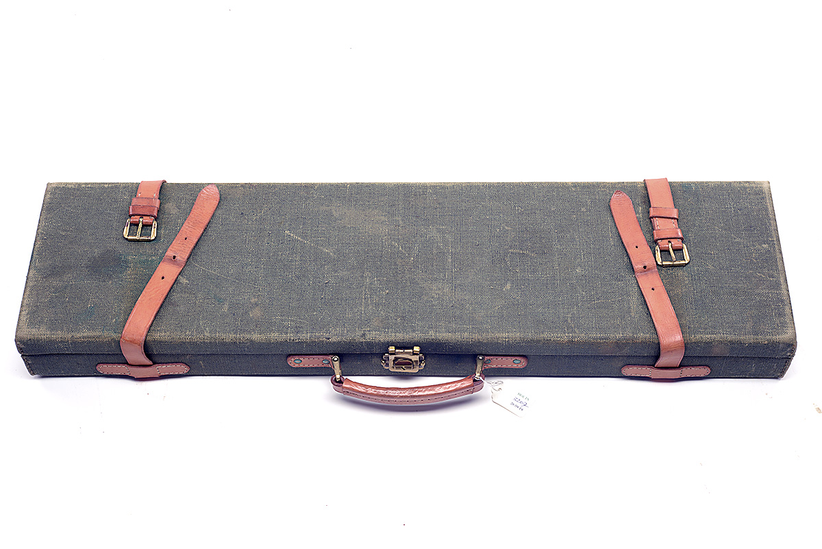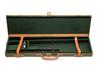 A GREEN CANVAS AND LEATHER SINGLE GUNCASE, fitted for 30in. barrels, the interior lined with green baizer