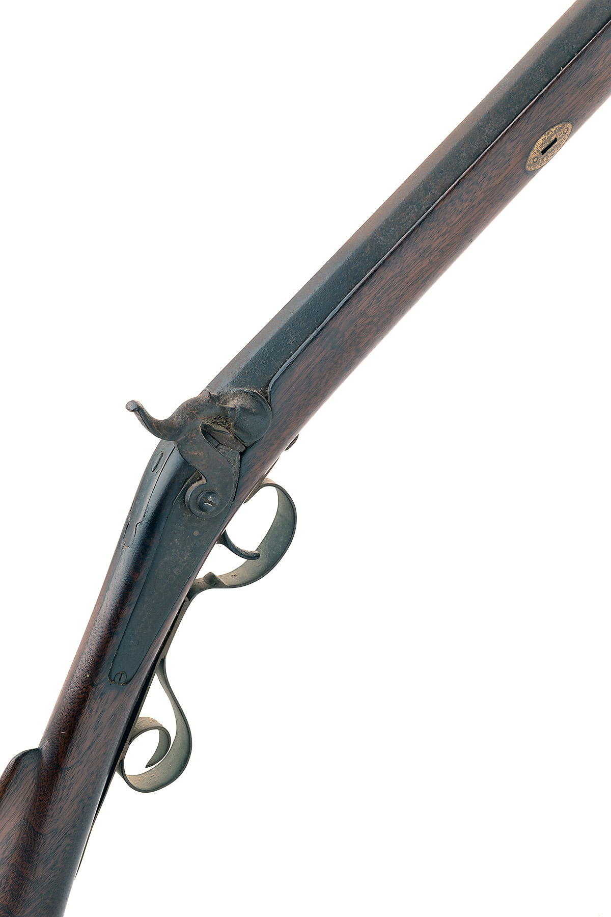 A 14-BORE PERCUSSION SINGLE-BARRELLED SPORTING-GUN, UNSIGNED, no visible serial number,
